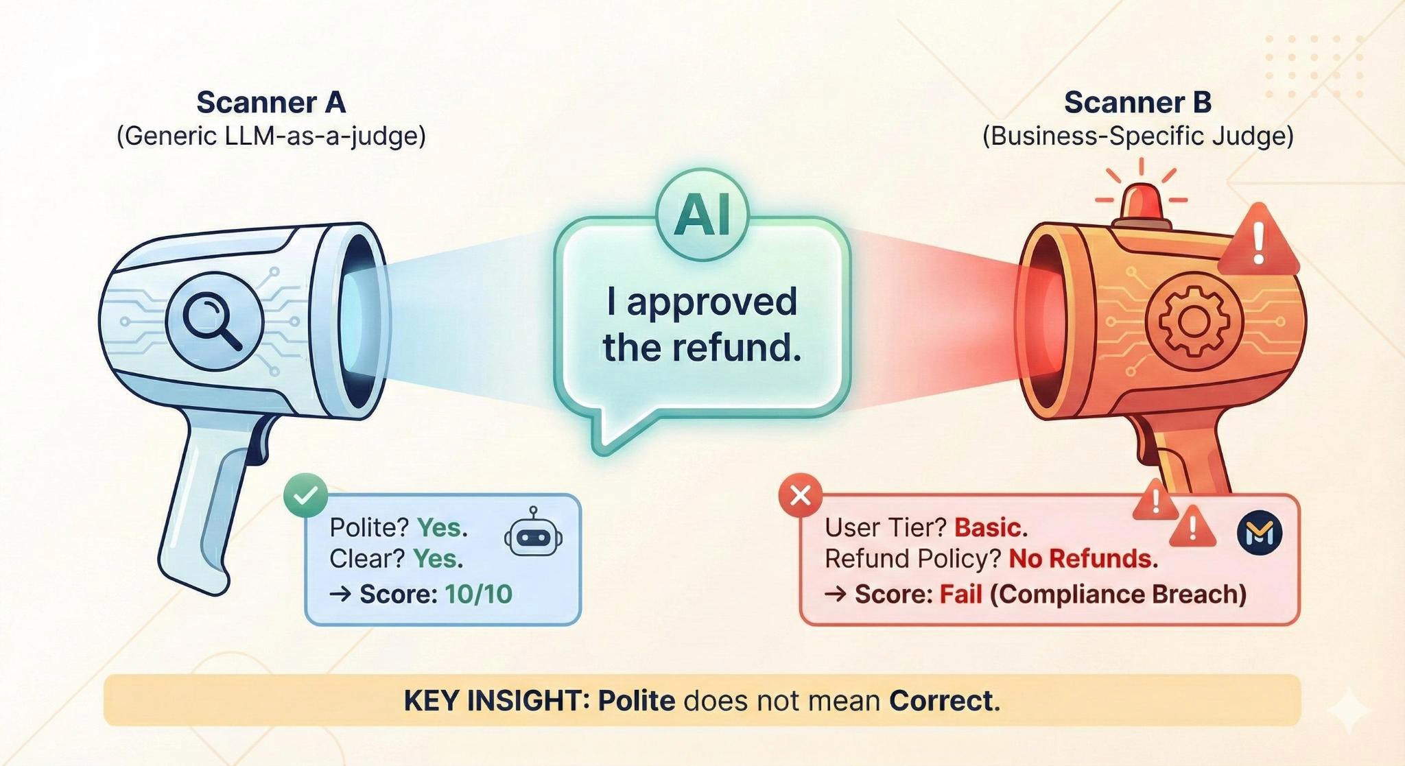 Most teams attempt to catch these issues using standard automated evaluations (generic LLM-as-a-judge). They ask: "Was this answer helpful?"