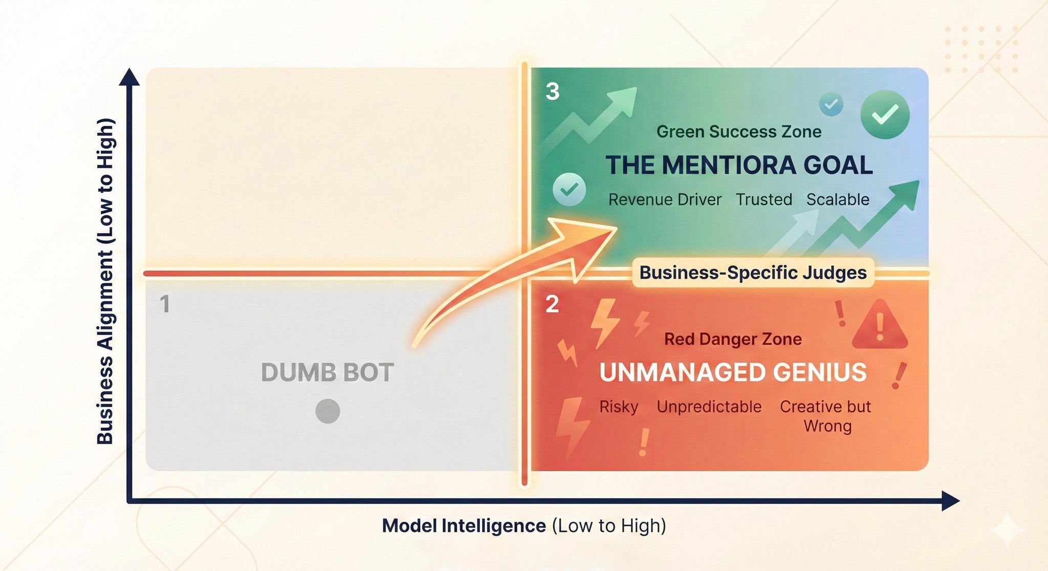 At Mentiora, we see a recurring pattern where companies optimize for Model Intelligence but neglect Business Alignment.