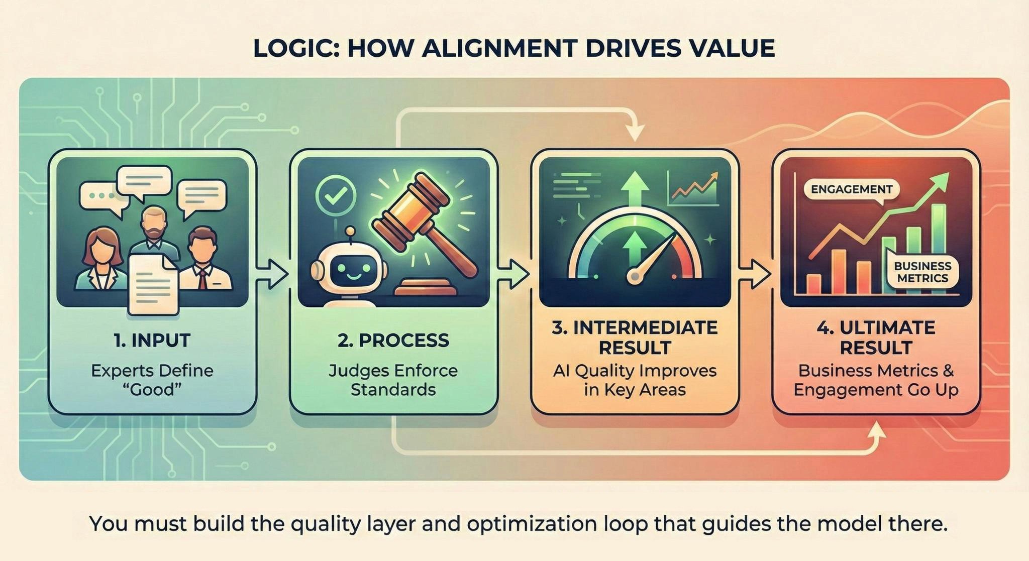 By injecting expert understanding into your evaluation suite, you force the AI to optimize for your users' needs, which naturally drives business goals.